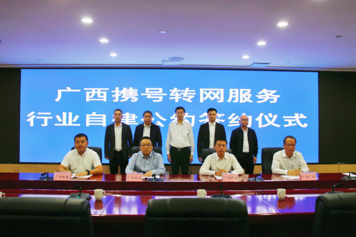 为提升携号转网服务水平,推动广西携号转网服务平稳健康发展,10月21日广西区内各基础电信企业签署《广西壮族自治区通信行业携号转网服务自律公约》。广西通信管理局黄长庆局长与中国电信广西公司、中国移动广西公司、中国联通广西分公司、广西广电网络公司主要负责人共同见证自律公约签约。
